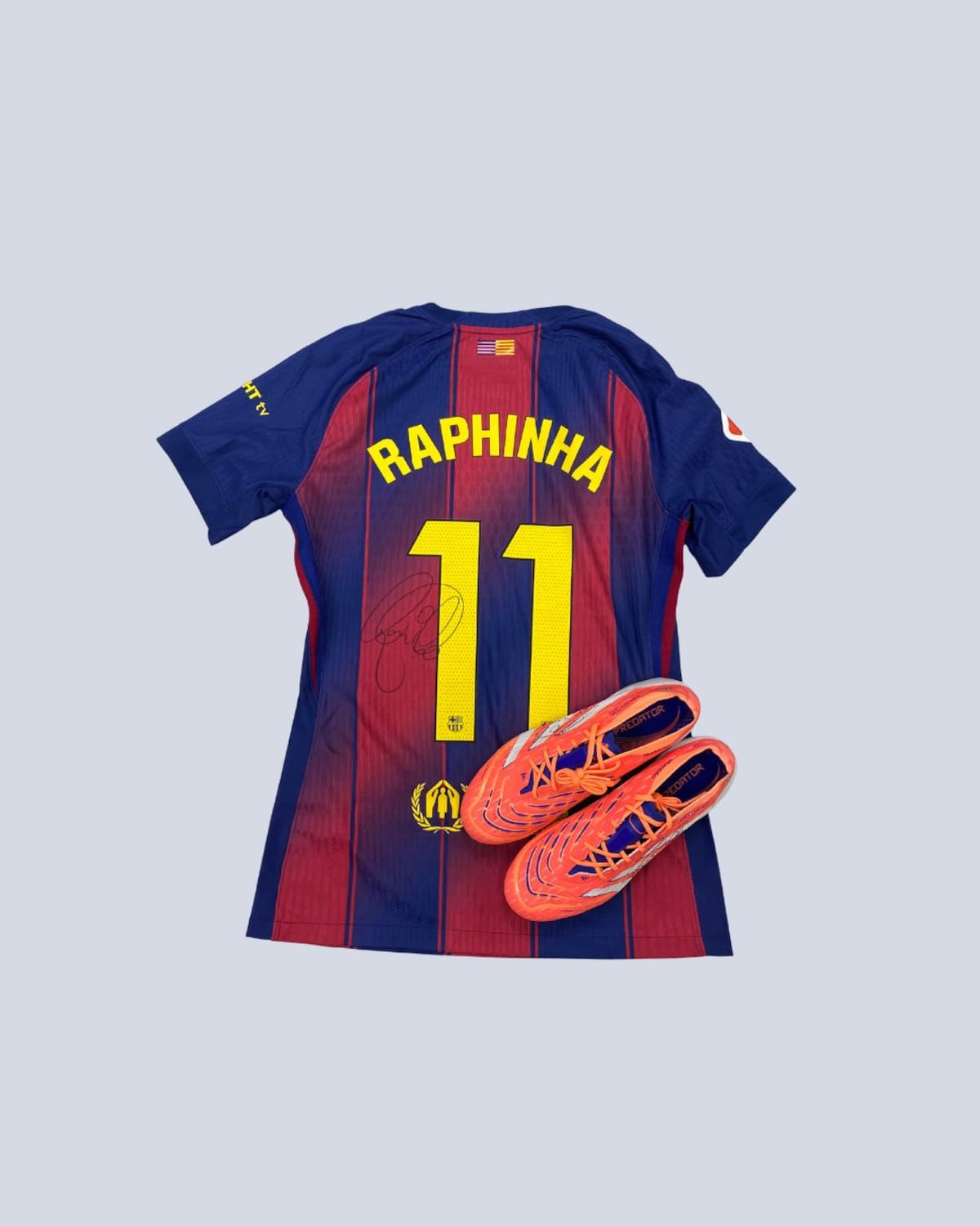 Samarreta i botes signades pel migcampista del F.C. Barcelona.