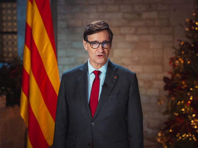 El presidente de la Generalitat de Cataluña, Salvador Illa, durante su tradicional mensaje con motivo de las fiestas de Navidad y San Esteban. / Generalitat/Arnau Carbonell (EFE)