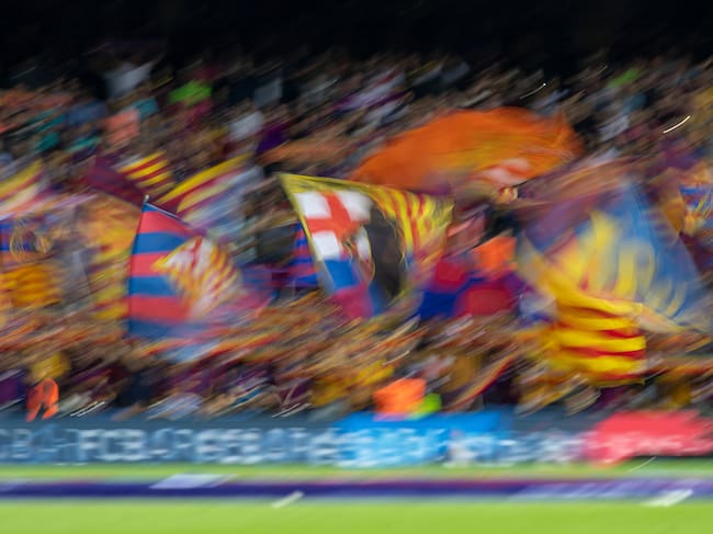 BARCELONA, SPAIN - October 6: Barcelona fans in full voice and waving flags during the Barcelona V Sevilla, La Liga regular season match at Estadio Camp Nou on October 6th 2019 in Barcelona, Spain. (Photo by Tim Clayton/Corbis via Getty Images) / Tim Clayton