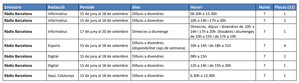 - Per a les places d’informatius i esports: Els/les estudiants matriculats/des en el grau de Periodisme i/o de Comunicació Audiovisual en el curs 2025-2026, sempre que hagin aprovat el 50% dels crèdits de la carrera.