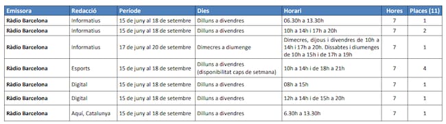 - Lloc on es realitzaran les proves: Ràdio Barcelona (C/Casp, 6 - 08010 Barcelona)