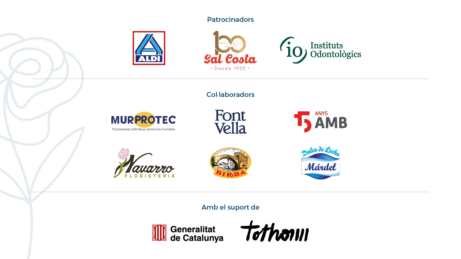 Con el patrocinio de Aldi, Sal Costa y Instituts Odontològics. Y con el soporte de la Generalitat de Catalunya.