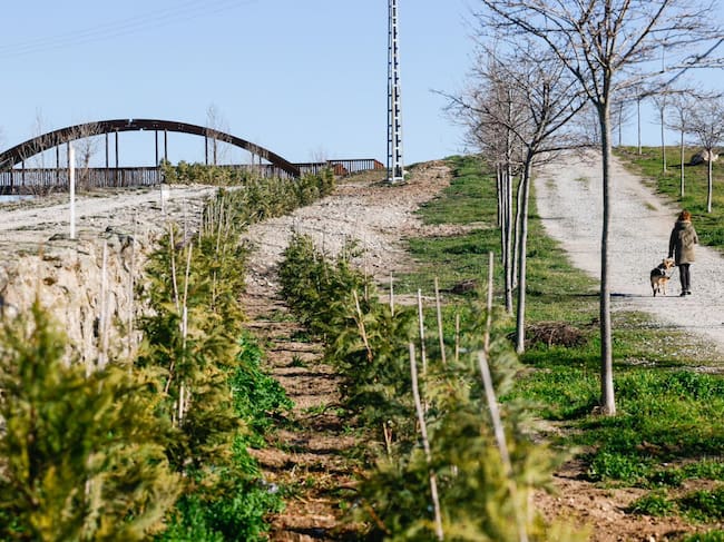 Los árboles se encuentran junto a un tramo de la Carretera de Hoyo de Manzanares, buscan generar una barrera vegetal para aislar acústica y visualmente a las viviendas aledañas