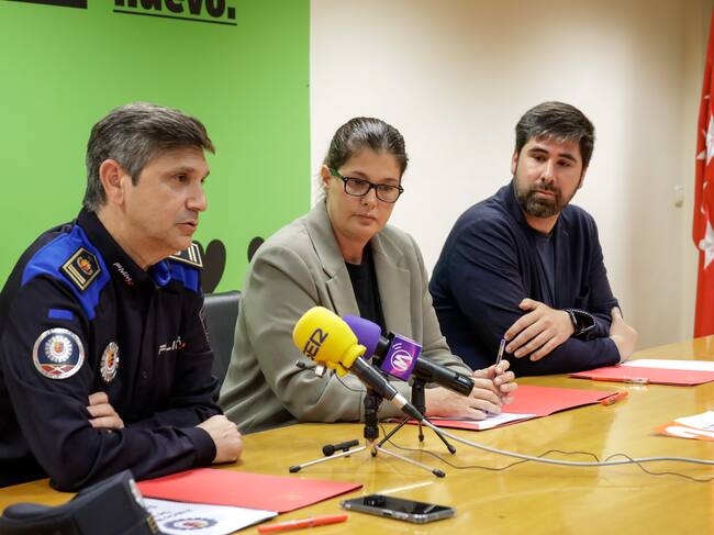 La alcaldesa de Móstoles, Noelia Posse, junto al concejal de seguridad, Álex Martín y el Comisario de la Policía Municipal de Móstoles, Juan Manuel Arribas / Ayuntamiento de Móstoles