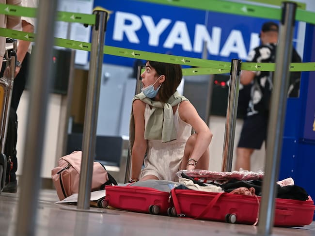 GRAF6908. MADRID, 24/06/2022.- Una mujer prepara su maleta en el puesto de facturación de Ryanair en el aeropuerto de Barajas. EFE/ Fernando Villar / FERNANDO VILLAR (EFE)