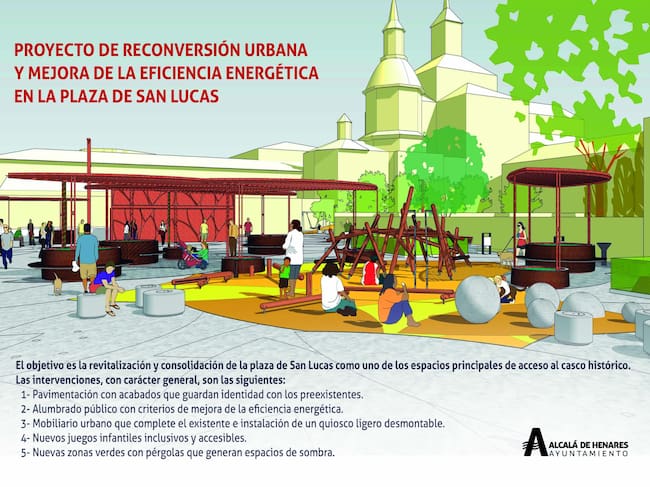 Antes de que acabe 2024 la actual explanada vacía sobre el aparcamiento de San Lucas se habrá transformado en una plaza llena de vida. La Junta de Gobierno del Ayuntamiento de Alcalá de Henares ha iniciado la contratación de un proyecto con 1.588.059,94 euros de presupuesto que servirá para dotar de sombra, zonas estanciales y juegos infantiles a un espacio inanimado con más de 8.000 metros cuadrados de superficie.