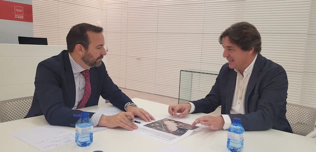 El alcalde de Fuenlabrada, Javier Ayala, se ha reunido con el viceconsejero de Política y Organización Educativa de la Consejería de Educación, Ciencia y Universidades de la Comunidad de Madrid, José Carlos Fernández, para ultimar el acuerdo por el que la Comunidad de Madrid cederá una parte del colegio público San Esteban para que allí el Gobierno fuenlabreño pueda desarrollar uno de los proyectos europeos más innovadores, como es el proyecto SHARE (Viviendas Sostenibles para un Intercambio Regenerador).