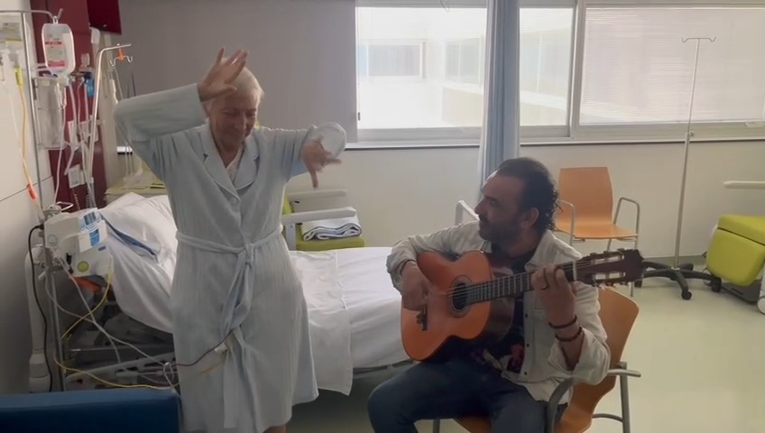 Margarita, hospitalizada en Cuidados Paliativos, amante de la música y el arte, recibió por sorpresa la vista de Diego, guitarrista y también paciente, que con su música flamenca consiguió hasta que bailara