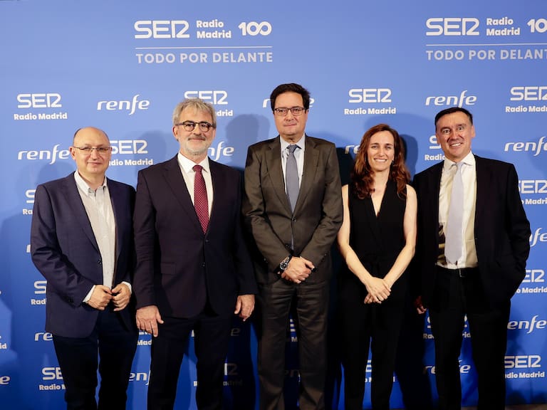 Fran Llorente, director de Contenidos de la Cadena SER, el director de Radio Madrid Javier García Beberide, el director general de Radio y Negocio Audiovisual de PRISA Radio, Jaume Serra y Mónica García, Ministra de Sanidad y el ministro para la Transformación Digital y de la Función Pública, Oscar López / jparis