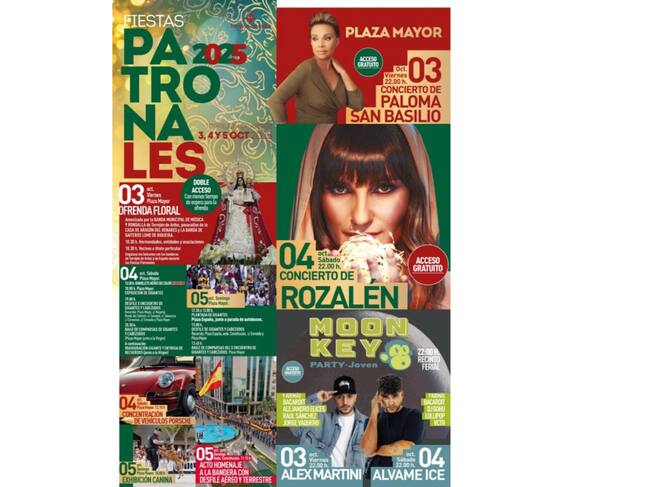 Rozalén actuará el sábado 4 de octubre en la Plaza Mayor. Una de las citas más relevantes de las Fiestas por ser "una de las mejores cantantes españolas al haberse convertido en la principal voz de la nueva canción de autor acumulando importantes distinciones, como cuatro Discos de Oro, dos de Platino, un Goya, el Premio Nacional de Músicas Actuales y tres nominaciones a los Latin Grammy", tal y como explica el consistorio.
