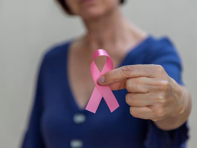 Mujer sosteniendo el lazo rosa que simboliza la lucha contra el cáncer de mama / Roche (EFE)