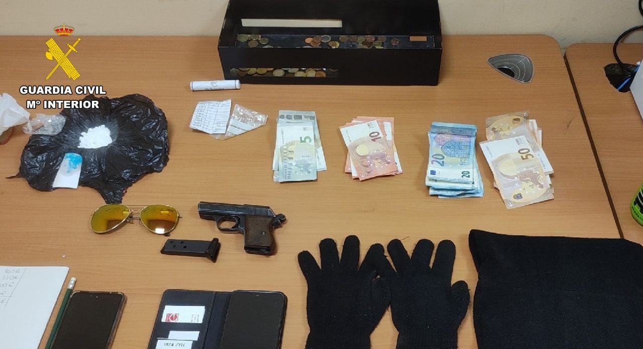 En el registro del automóvil, los agentes intervinieron 840 euros en efectivo, una caja registradora, una cantidad de cocaína y diversas prendas de vestir presuntamente utilizadas durante el atraco.