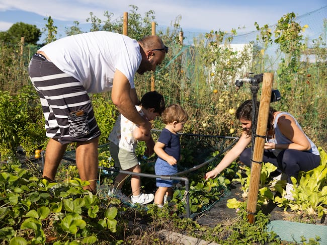 Familia tricantina cultivando en uno de los huertos urbanos del municipio