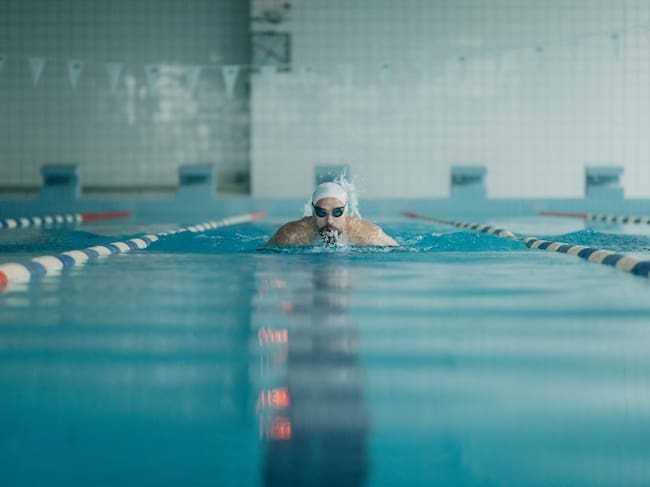 Un hombre nadando en una piscina cubierta / Halfpoint Images
