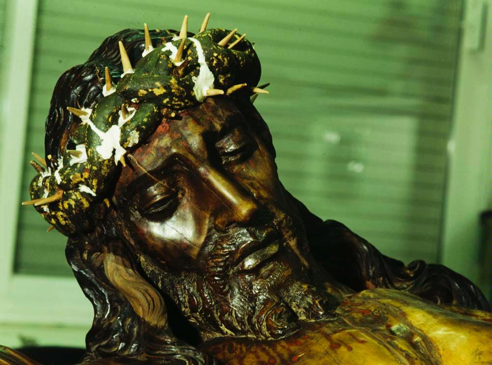Las extremidades concentraban los daños más graves. Ambas piernas habían sufrido fracturas y estaban sujetas con clavos sin corrección estructural eficaz. Las manos mostraban dedos repuestos y fisuras, mientras que la cabeza presentaba grietas visibles, pérdidas en mechones de cabello y una corona de espinas muy incompleta. También se detectaron ataques de insectos xilófagos, deformaciones en los apliques metálicos y suciedad acumulada por humo de cirios y barnices envejecidos.