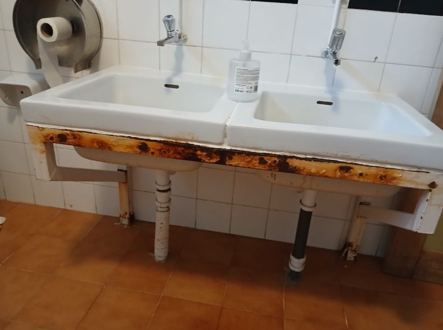 El diagnóstico por centros, ilustrado con fotografías, refleja una realidad heterogénea pero igualmente preocupante para la formación. En el CEIP Miguel de Cervantes, el foco está en el «estado avanzado de oxidación» de los baños. En el CEIP Antonio Machado, los socialistas alertan de un riesgo para los alumnos debido a la «falta de azulejos en paredes» y al mal estado de una farola, cuya cobertura está rota. También en este centro, advierten de una puerta de acceso a los patios que «empieza a doblarse por la presión del muro».