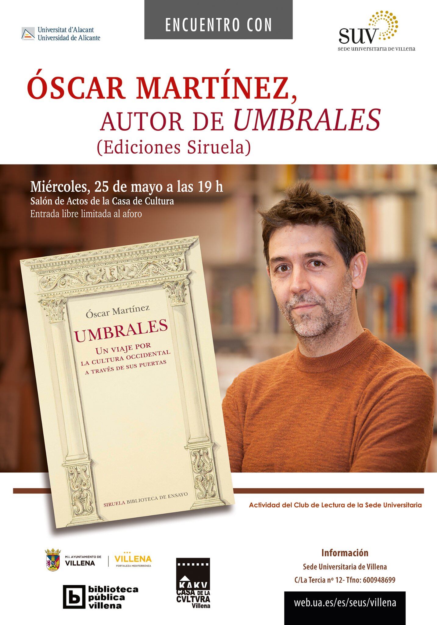 Además, el miércoles 25 de mayo, y en el marco de las actividades del club de lectura de la Sede Universitaria, se contará con la presencia del escritor y profesor en Historia del Arte, Oscar Martínez, autor de “Umbrales”, que es un libro de viajes a través de la historia de la arquitectura, del tiempo y el arte.
