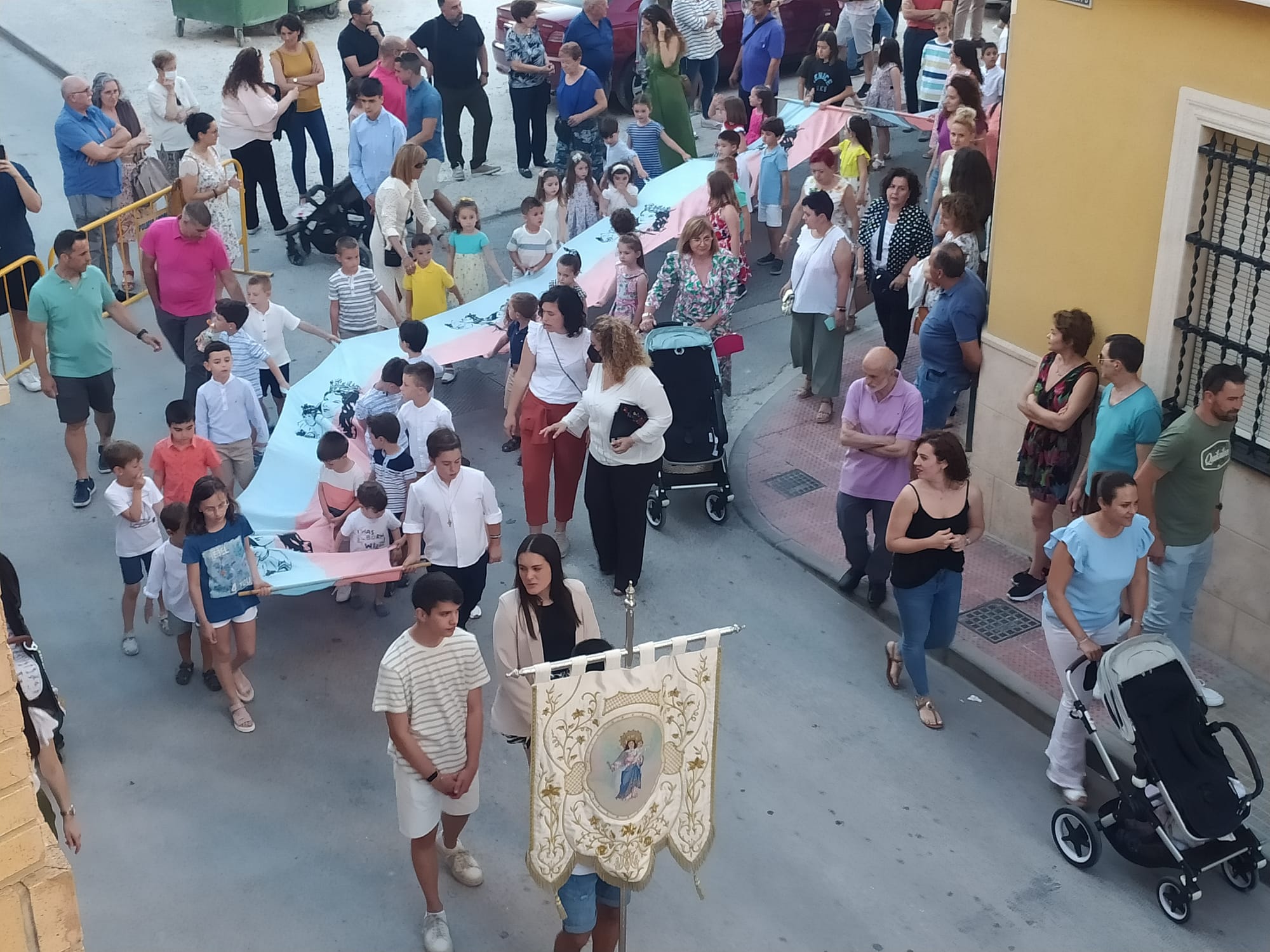 La Procesión de María Auxiliadora, con la participación del piquete de tambores de la Cofradía de Nuestra Sra. De los Dolores y la Sociedad Musical Ruperto Chapí, se ha desarrollado por el recorrido habitual, tras la Misa oficiada en el patio del Colegio Salesiano, y con la presencia tanto de los niños y niñas que han tomado hace unos días la Primera Comunión, junto a una amplia representación de los alumnos y alumnas del colegio, unidos al Ampa y a la Asociación de Antiguos Alumnos Salesianos