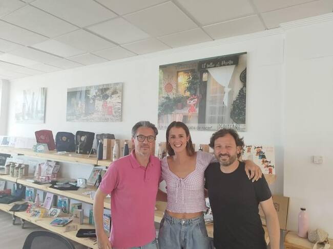Bea Escribano flanqueada por el presidente del Elda Prestigio, Manolo Pastor (I) y el entrenador, Antonio Mateo / Elda Prestigio