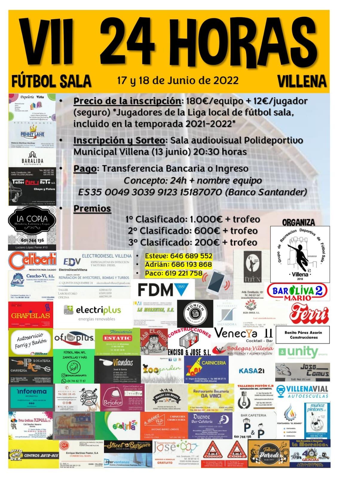 Esteve, uno de los organizadores, ha pasado por el programa SER DEPORTIVOS de Radio Villena destacando los detalles, y especialmente los premios, que se han intentado sean lo más altos posible, en función de las posibilidades, con 1.000 euros para el primer equipo, 600 para el segundo y 200 para el tercero, junto con trofeo