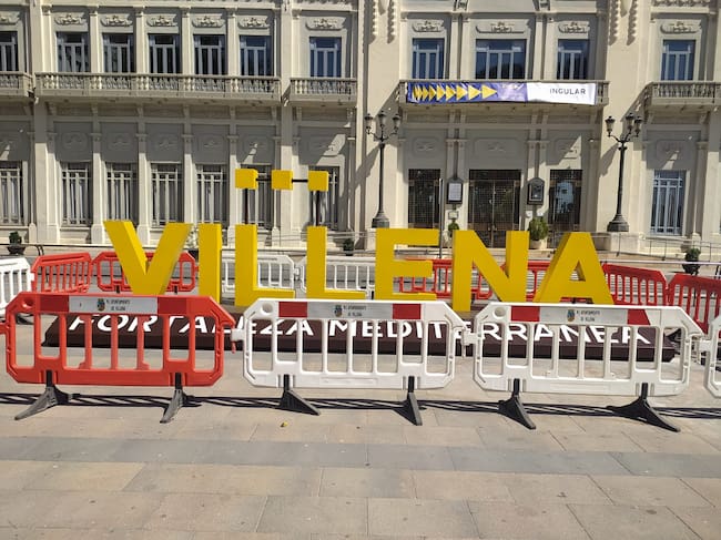 El estreno oficial será esta mañana, en cuanto sean retiradas las vallas que hasta ahora custodian este nuevo elemento, que formará parte de la decoración, y de cualquier referencia a Villena para quien se haga una foto en este punto de la Ciudad