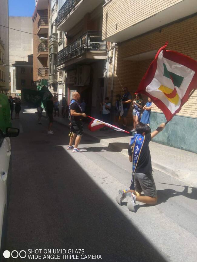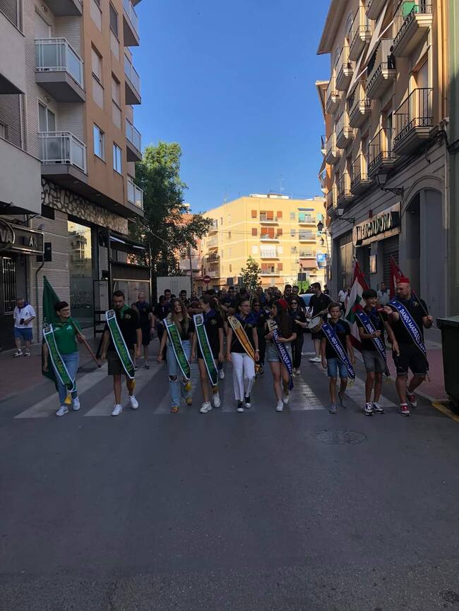 Antes y después, los desfiles informales han expandido el ambiente por diversas calles de la Ciudad. Y de paso, hasta se han rodado las banderas en este encuentro conjunto compartido por dos comparsas, pero también con festeros de otras formaciones locales.