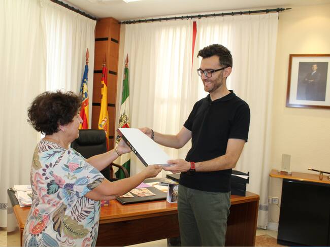 Concha Navarro entrega el ejemplar al alcalde de Novelda / Ayuntamiento Novelda