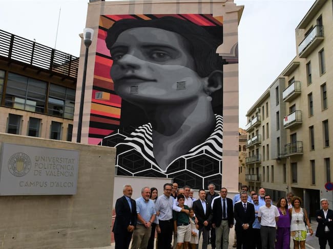 El campus de Alcoy de la UPV ya luce la obra artística, firmada por Vanesa Galdeano y Anali Chanquia, que se ha inaugurado este martes con la presencia de familiares de la homenajeada, de autoridades universitarias, de La Unión y de la capital de L'Alcoià