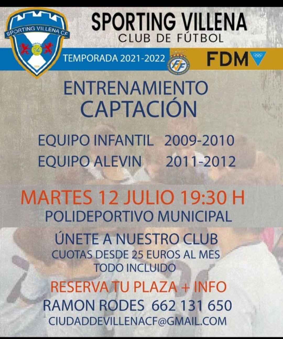 Este martes, con un llamamiento a los jugadores nacidos en 2009 y 2010 para conformar el equipo infantil, y a los nacidos en 2011 y 2012 para cerrar un alevín, se inicia el que será nuevo proyecto deportivo para el Sporting Villena, que entre sus objetivos se ha planteado volver a tener un senior si las condiciones y la demanda lo permiten.