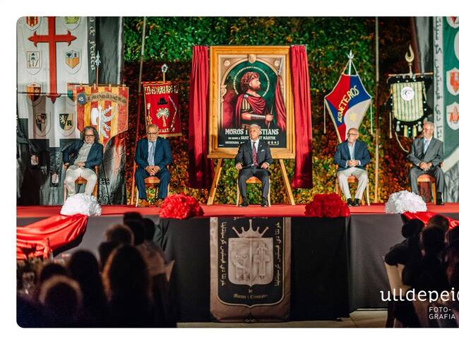 En el acto de presentación estuvieron el capitán cristiano, José Rafael Llorens Montava, Moisés Gil, abanderado cristiano, el capitán moro, Miguel Palací y Vicent Torró Castelló, abanderado moro