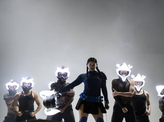 Rugían los motores y Rosalía, acompañada de ocho bailarines con máscaras de luces LED, saltó al escenario del Auditorio Marina Sur de València para dar comienzo al quinto concierto de su gira internacional 'Motomami World Tour'.