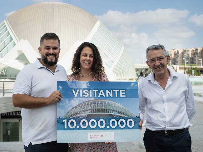 El Hemisfèric de la Ciutat de les Arts i les Ciències ha recibido este jueves a su visitante 10 millones desde que abrió sus puertas en abril de 1998. Se trata de Jesús León Sánchez, vecino del barrio de Benicalap (València) que se ha mostrado ‘muy contento y sorprendido’ al conocer la noticia a su llegada al Hemisfèric.