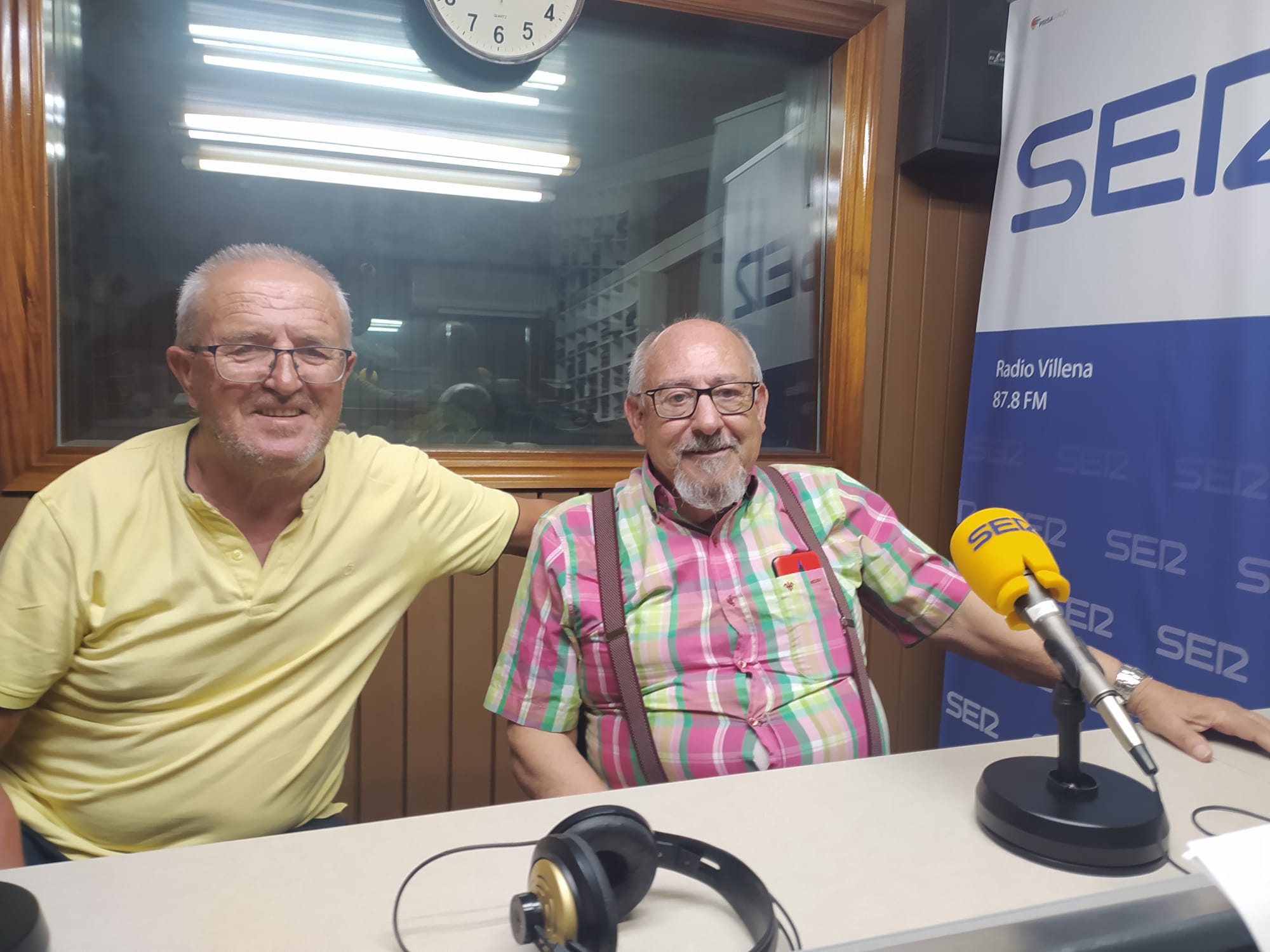 El Presidente de la Comparsa, y el Socio galardonado con el premio "Pluma de Plata", en el programa "Villena y sus fiestas" de Radio Villena SER