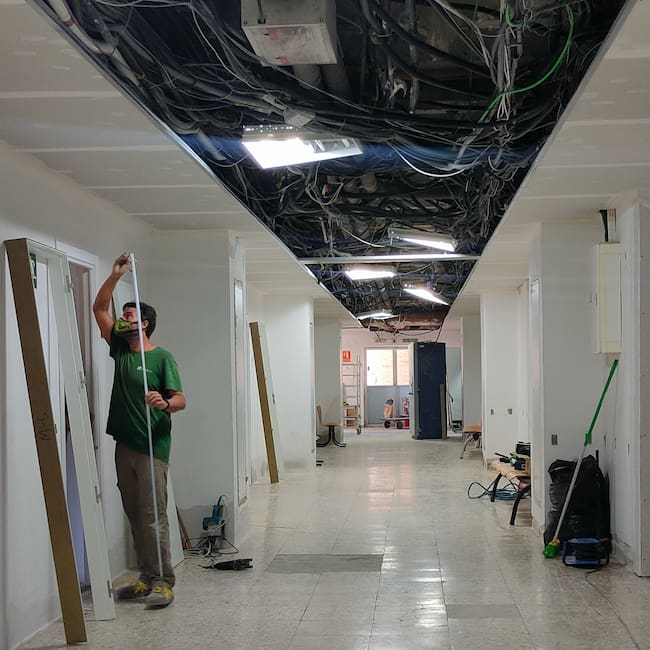 El objetivo principal de esta renovación ha sido redistribuir y acondicionar los espacios de la planta de Obstetricia. Para ello, se han demolido los falsos techos, se han cambiado azulejos de los baños y se ha cambiado la iluminación por un nuevo sistema de tecnología led, así como un nuevo sistema de renovación de aire. Por último, la planta ha sido adaptada a la actual normativa sobre protección contra incendios, por lo que se han instalado detectores de humos en todas las estancias.