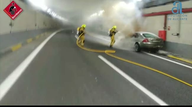 El accidente se producía pasadas las 14 horas según la información del Consorcio de Bomberos, iniciándose el fuego en los bajos del vehículo después de que éste colisionara con la pared del túnel. El conductor pudo salir por su propio pie y aparentemente se encontraba bien.