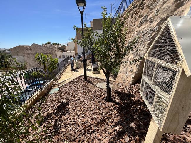Una zona transformada de un terraplén que servía de escombrera a terrazas ajardinadas. La actuación llevada a cabo en la zona ha constado de dos fases. La primera, el acondicionamiento del aparcamiento en la calle Carlos Regino Soler y su conexión con la calle Picayo mediante escaleras, con una subvención de la Diputación de Alicante, por un importe de más de 46.000 euros. La segunda, en la que han intervenido los alumnos-trabajadores del Taller de Empleo Saxum VII, se han realizado las labores de ajardinamiento, consolidación de las terrazas, mobiliario urbano y demás elementos que se han instalado en esta zona.