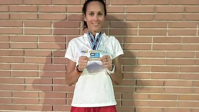 Pilar Rubio exhibe su medalla de plata en el Europeo de 50k en ruta / C. A. Elda