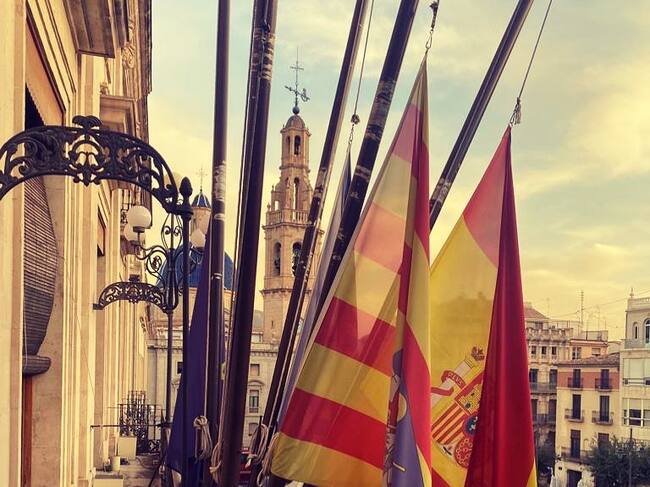 Las banderas del Ayuntamiento de Alcoy ondean a media hasta en señal de duelo por el fallecimiento de la joven de 27 años. / Ajuntament d'Alcoi