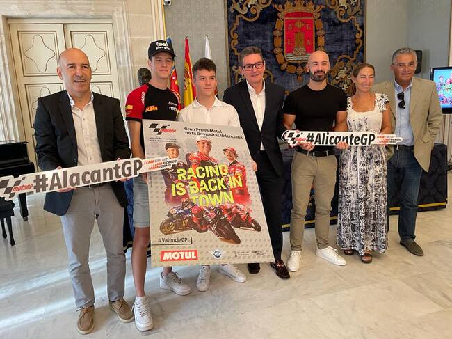 El acto de presentación de la prueba se ha celebrado en el Ayuntamiento de Alicante y ha contado con la presencia del concejal de Deportes, José Luis Berenguer, y los pilotos mundialistas Daniel Holgado (Red Bull KTM Ajo) e Iván Ortolà (Angelus MTA Racing KTM), así como del presidente de la Federación de Motociclismo de la Comunitat Valenciana, Carmelo Fernández.
