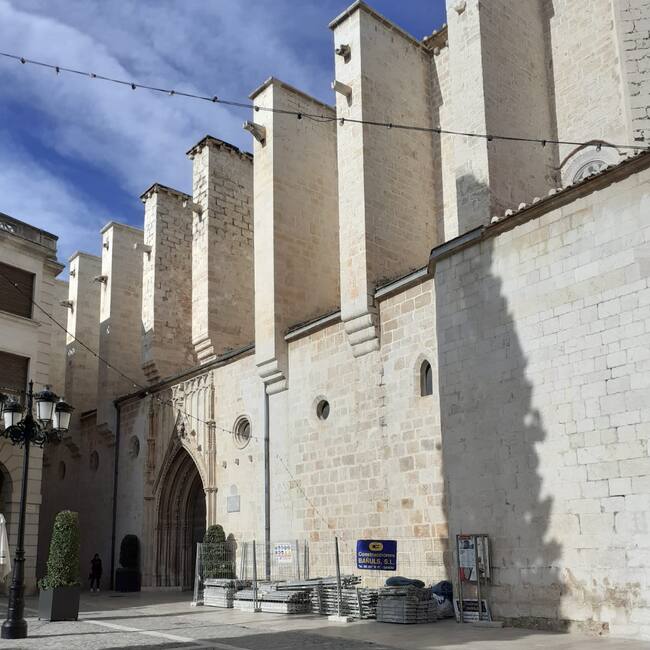 Las obras de los contrafuertes de la Colegiata de Gandia han comenzado hoy. / Colegiata