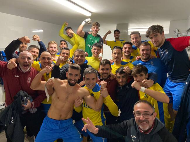 Jugadores del Dénia celebrando la victoria en La Font. / CD Dénia