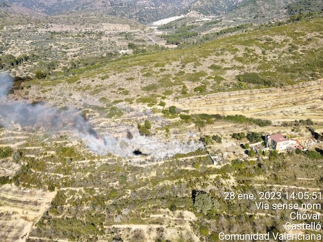 El Centro de Coordinación de Emergencias de la Generalitat Valenciana ha dado por extinguido a las 15.21 horas de este sábado el incendio forestal declarado en Chóvar.