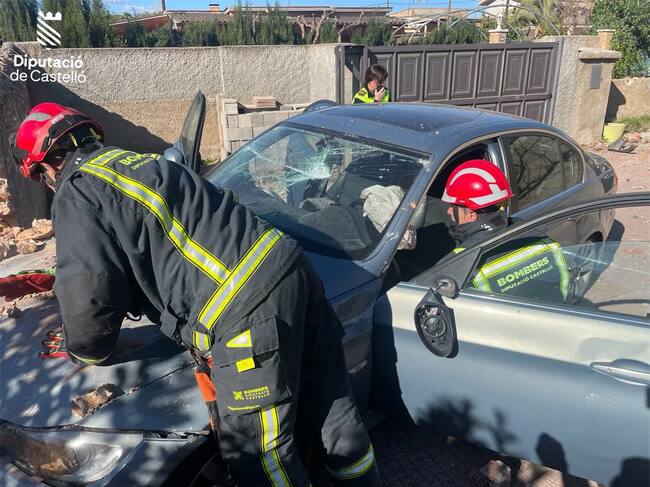 El Consorcio Provincial de Bomberos ha intervenido en el accidente de un turismo que ha colisionado contra la pared del patio de una vivienda en Vila-real.