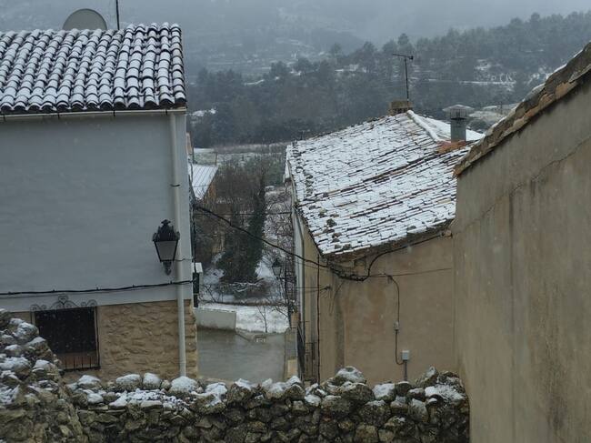 Las temperaturas bajo cero y la presencia de un frente húmedo se ha traducido en la presencia de copos de nieve en el entorno de las sierras de Serrella y Aitana en la comarca de El Comtat, en la mañana de este domingo 29 de enero. La imagen de Joan Carcer muestra la presencia acumulada de nieve en los tejados de Tollos a primera hora de la mañana y que han teñido de blanco, de manera leve el núcleo poblacional, en la tercera “enfarinà” del mes. La primera se registró el miércoles 18 que alcanzó también las cotas más altas de L'Alcoià y la siguiente el 25 de enero.