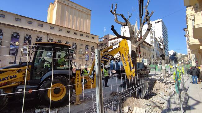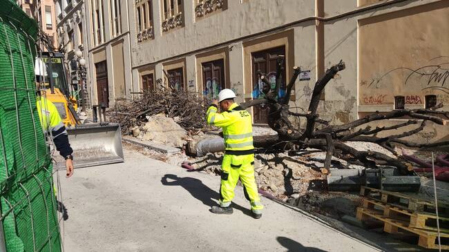 Operarios excavando junto a un alcorque para retirar una de las melias / Omar Sancho Maestre