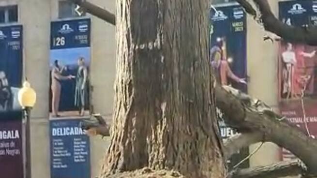 Llegó el día. Este jueves ha comenzado el traslado de las 23 melias de la avenida de la Constitución, después de que esta semana se podaran para prepararlas. Cerca de una treintena de vecinos y representantes de la oposición se han concentrado junto al Teatro Principal para protestar contra un traslado que califican de "tala encubierta".