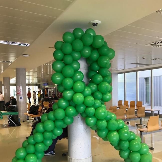 El hospital de Gandia luce una gran lazada verde con motivo del Día Internacional Contra el Cáncer. / DS Gandia