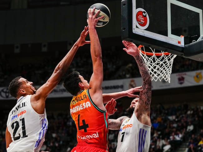 Además, es que Valencia Basket lo hacía todo mal. Fallos constantes en el tiro exterior con un 0 de 6 inicial que luego fue un 1 de 9, y falta de tensión en las dos canastas, porque el Real Madrid dominaba con contundencia el rebote defensivo y también el ofensivo. Fue a mediados del segundo cuarto cuando, sobre todo con la salida a pista de Jasiel Rivero, el equipo de Álex Mumbrú se puso las pilas, subió la intensidad y empezó a jugar la Copa del Rey.