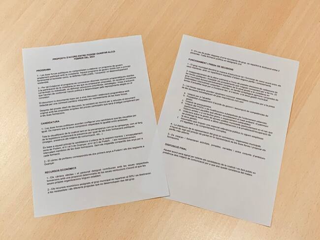 Propuesta de acuerdo entre Podem y Guanyar Alcoy / Guanyar Alcoi