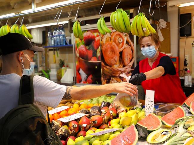 Una trabajadora de una frutería del Mercado Central de Valencia atiende a un cliente / Iván Terrón - Europa Press - Archivo (EUROPA PRESS)